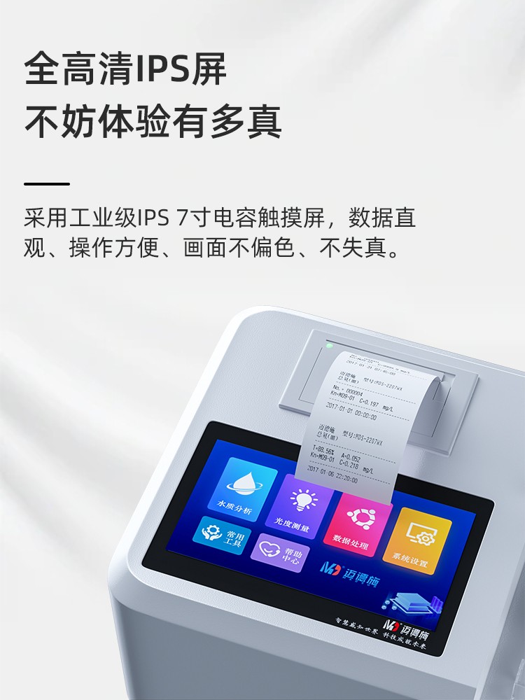 人工智能語音播報提示,可隨意調節(jié)音量, 使用更方便更 配備112種預先編程的曲線,曲線數量990條,可濃度直讀,測量結果更精密; 具有數據存儲功能,可存儲90萬組數據,并能自由查看; 10寸彩色液晶顯示觸摸屏,全中文操作模式,更便于操作掌握; 儀器自備校準功能,可根據標準樣品計算, 并存儲曲線,無需手動制作曲線; 配備USB接口傳輸功能,自帶打印機,可打印當前數據及存儲的歷史數據; 采用管比色、皿比色,雙比色系統