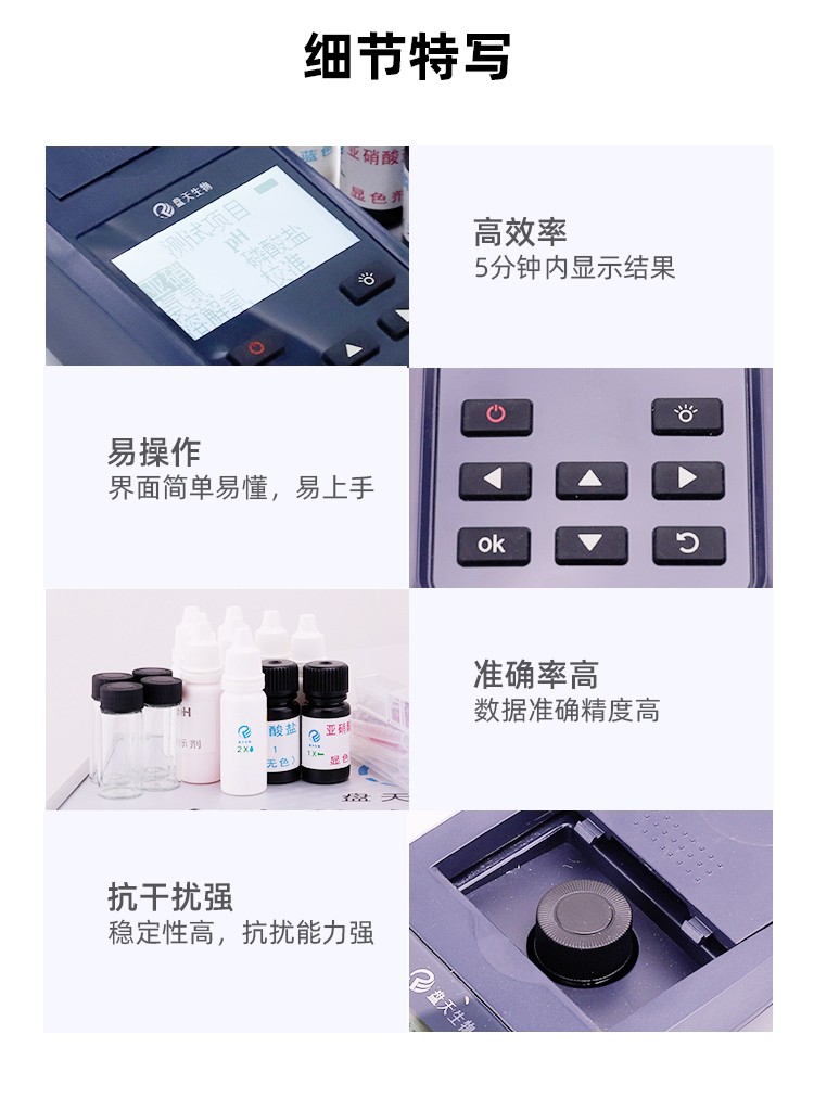 一款適用于工業(yè)污水、水產(chǎn)養(yǎng)殖等領(lǐng)域的檢測儀,配合檢測試劑,可“快速、簡單、準(zhǔn)確、穩(wěn)定”進(jìn)行測量,擁有精美的外觀造型,簡單的操作界面,準(zhǔn)確的檢測系統(tǒng),幫助用戶獲得精細(xì)的數(shù)據(jù),可更準(zhǔn)確、有效的分析水體狀況,提前預(yù)防養(yǎng)殖風(fēng)險(xiǎn),及時(shí)避免損失。 數(shù)據(jù)準(zhǔn)確,攜帶方便,檢測快速,操作簡單